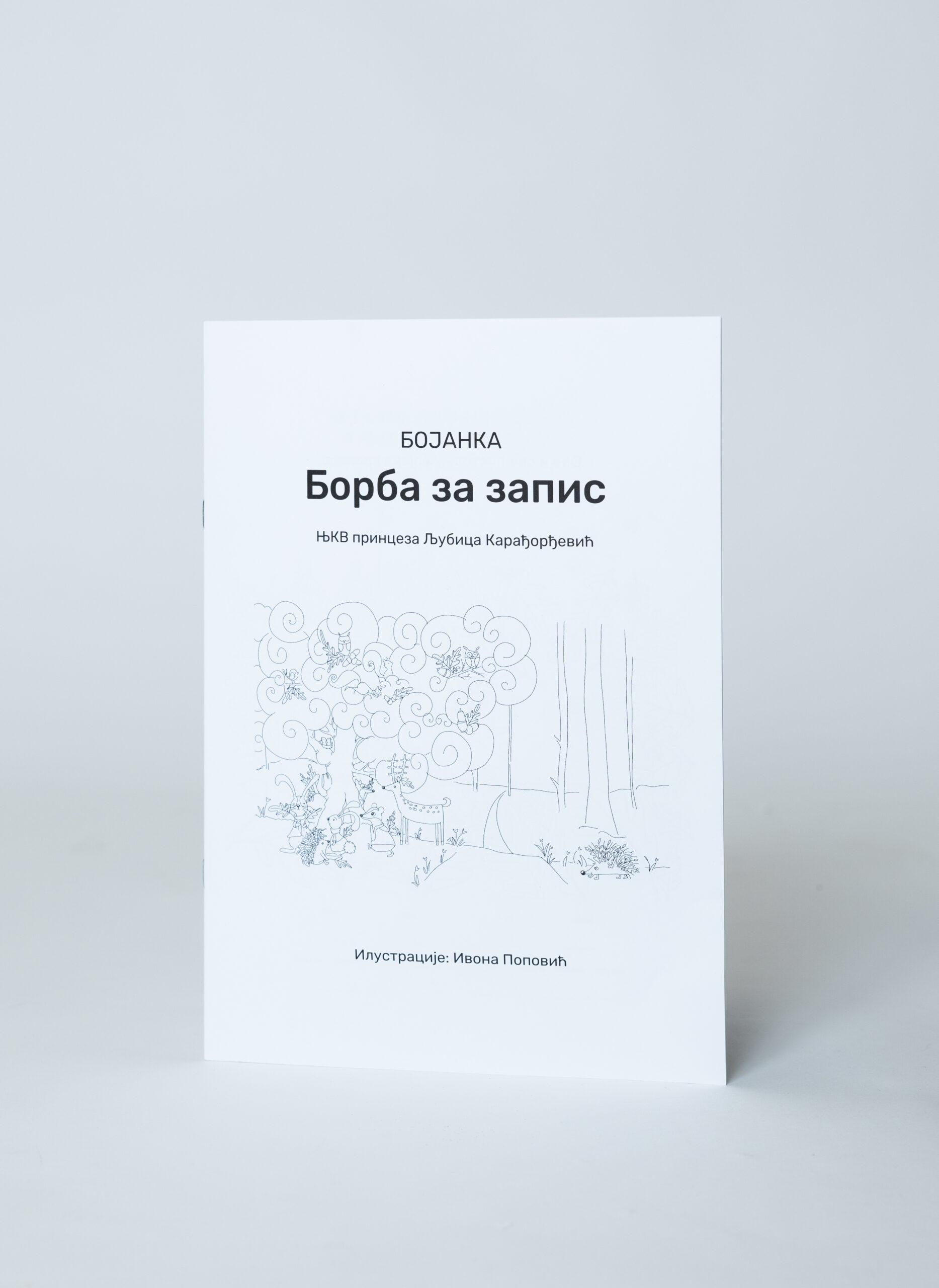 Bojanka „Borba za zapis“ urađena je po motivima iz istoimene knjige princeze Ljubice, a prema ilustracijama Ivone Popović. Grafičku pripremu uradio je Radenko Mićić, a štampu štamparija Futura iz Novog Sada. Bojanka ima 12 strana sa ilustracijama i zadacima namenjenim deci predškolskog i nižeg školskog uzrasta.